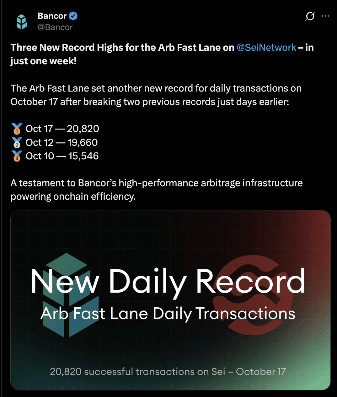 In just one week, the Arb Fast Lane set three new records for daily transactions on Sei: